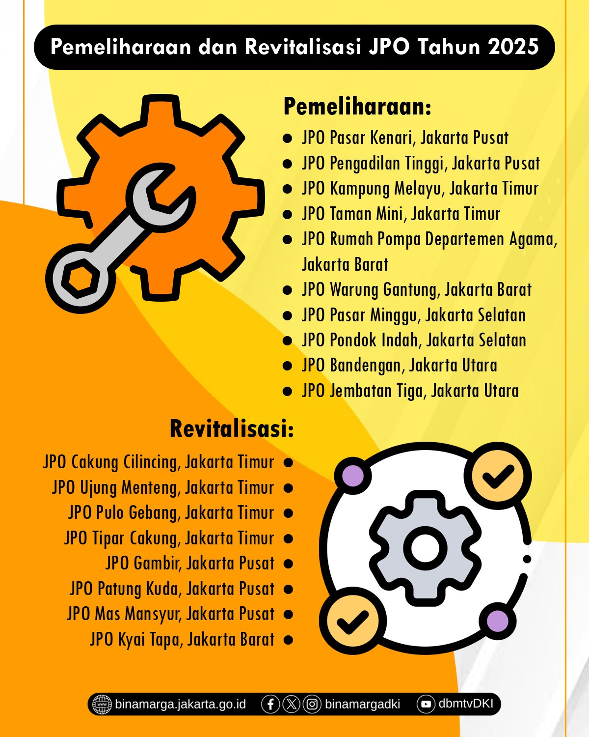 Berikut daftar lengkap lokasi JPO yang akan menjalani pemeliharaan di tahun 2025: