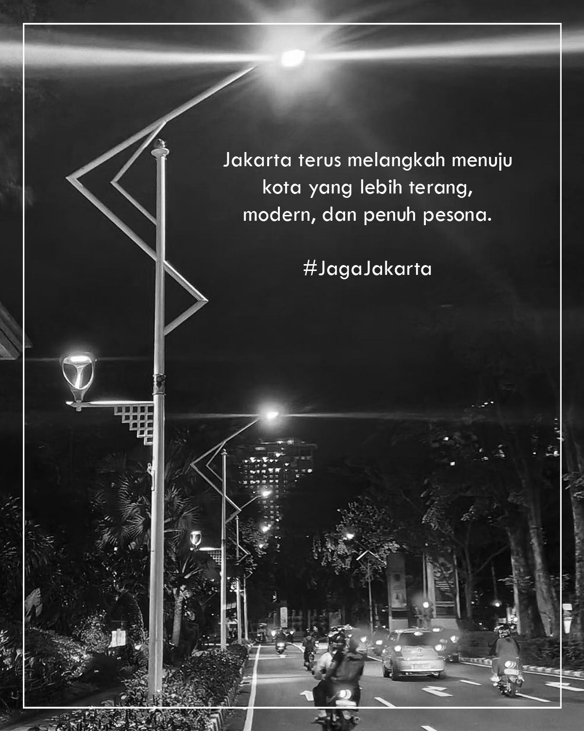 Inisiatif ini juga sejalan dengan semangat “Jakarta Menyala”, yang tidak hanya bermakna secara harfiah, tetapi juga melambangkan semangat perubahan menuju kualitas hidup yang lebih baik bagi seluruh warga Jakarta. Melalui penerangan yang cerdas dan ramah lingkungan, Jakarta berkomitmen untuk terus menciptakan ruang publik yang lebih manusiawi, estetis, dan berdaya guna.