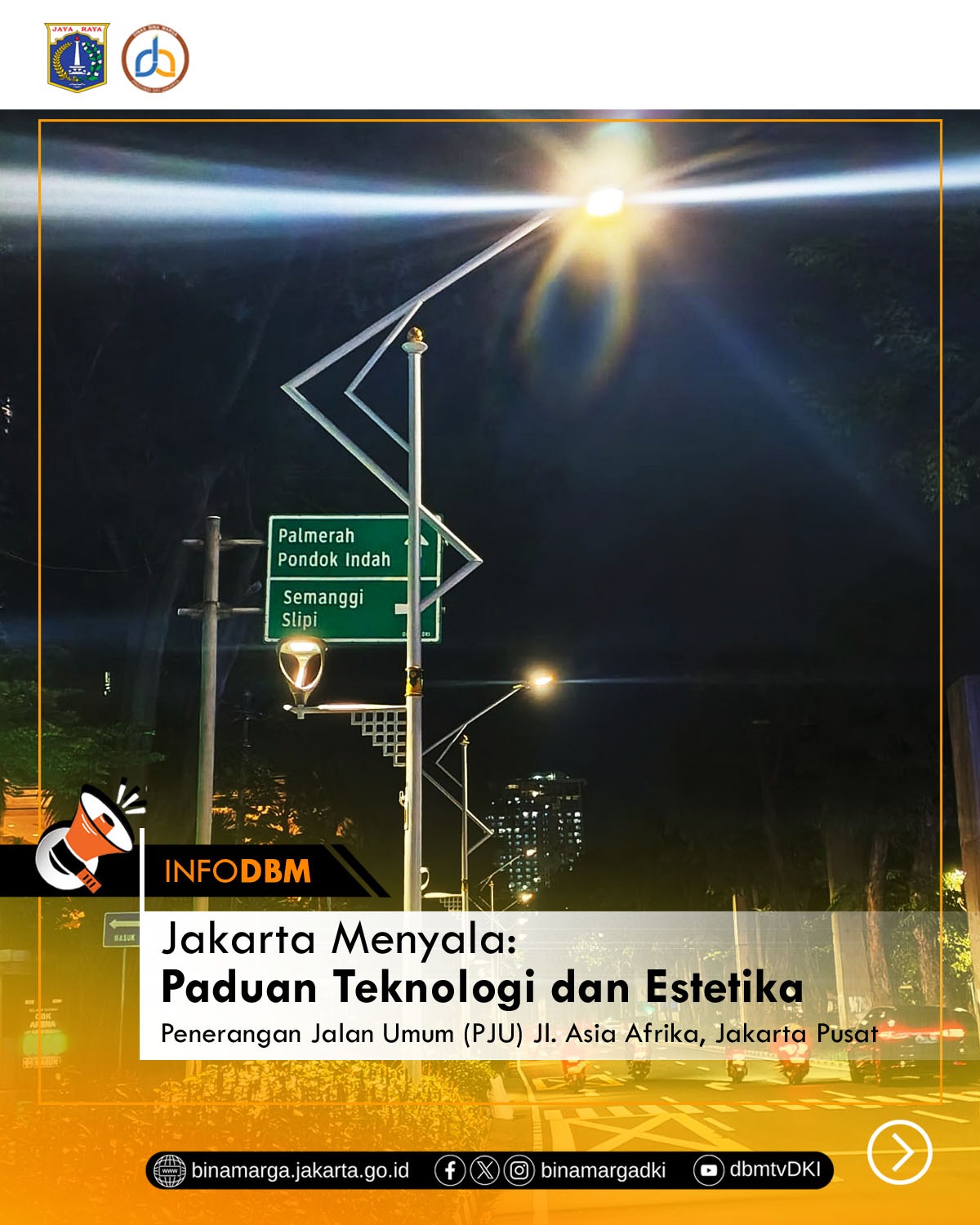 Jakarta – Upaya Pemerintah Provinsi DKI Jakarta dalam mewujudkan kota yang modern, aman, dan berkelanjutan terus menunjukkan kemajuan nyata. Melalui Dinas Bina Marga, Pemprov DKI kini menghadirkan inovasi infrastruktur penerangan jalan modern di kawasan Jl. Asia Afrika, Jakarta Pusat, dengan mengimplementasikan sistem Penerangan Jalan Umum (PJU) LED Smart System.