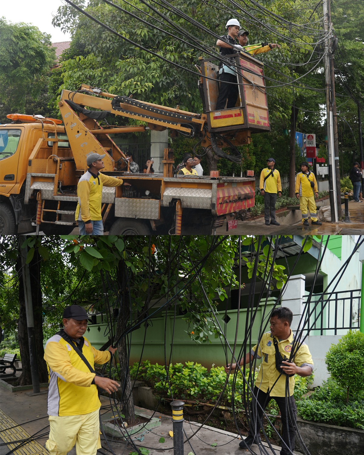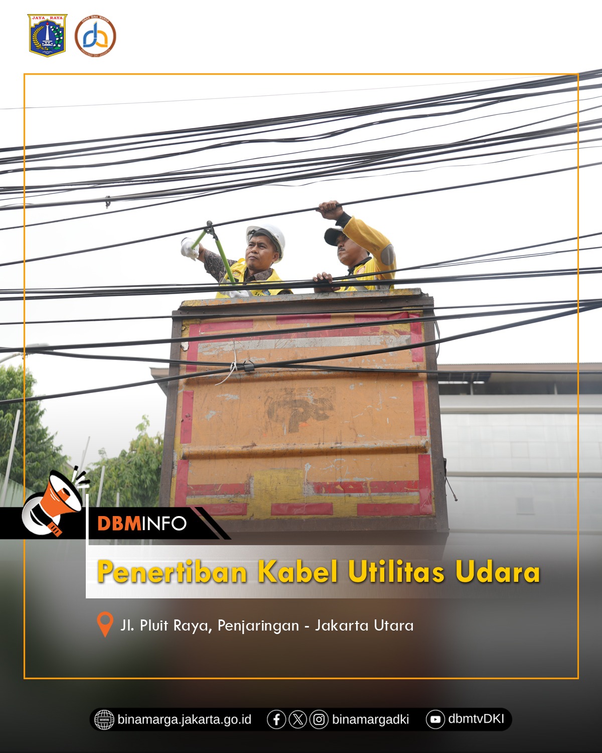 Jakarta — Dinas Bina Marga Provinsi DKI Jakarta melalui Suku Dinas Bina Marga Kota Administrasi Jakarta Utara melakukan pemutusan kabel udara sekaligus penataan jaringan utilitas di wilayah Kelurahan Penjaringan, Jakarta Utara. Kegiatan ini merupakan bagian dari upaya penataan utilitas kota agar lebih tertib, aman, dan berkelanjutan.
