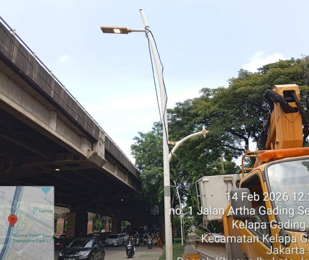 Dinas Bina Marga Provinsi DKI Jakarta melalui Suku Dinas Bina Marga Jakarta Utara telah menangani lampu Penerangan Jalan Umum (PJU) di Jl. Yos Sudarso kawasan Artha Gading, Jakarta Utara yang sempat tidak berfungsi. Penanganan dilakukan pada Sabtu, 14 Februari 2026.