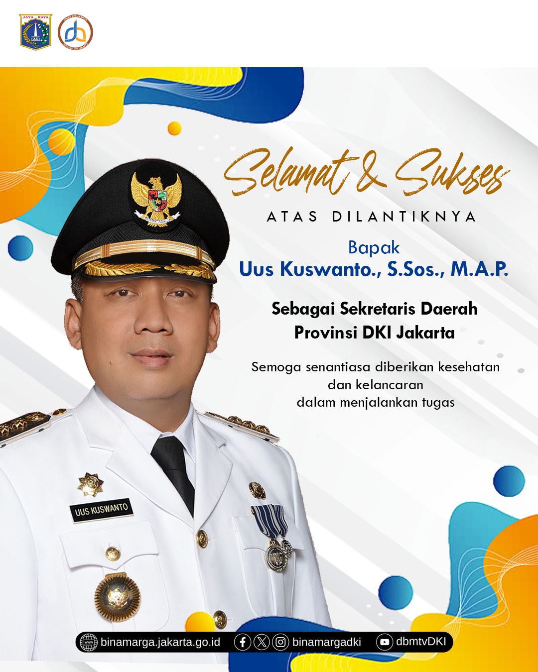 Jakarta - Selamat bertugas kepada Bapak Uus Kuswanto, S.Sos., M.A.P. Semoga amanah baru ini dapat memperkuat pembangunan Jakarta menuju kota yang modern, inklusif, berdaya saing, serta terus mengawal transformasi Jakarta menjadi Kota Global.